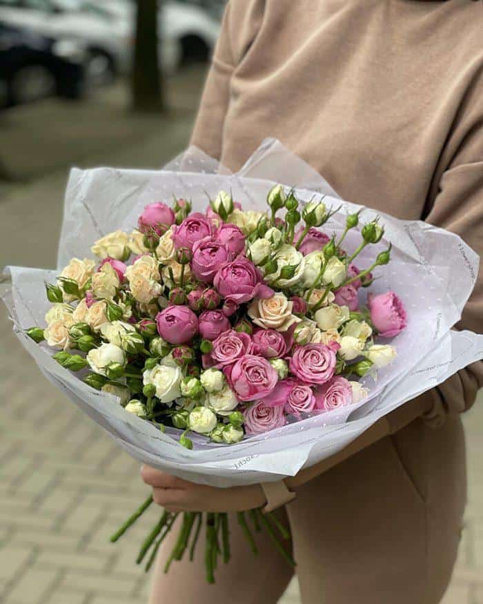 - 25 веточек кустовых роз нежных оттенков