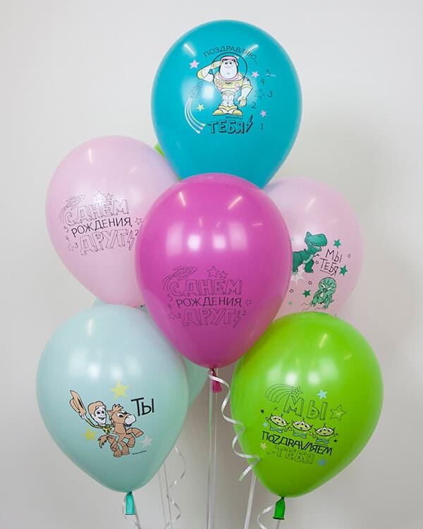 Шары с шелкографической многоцветной печатью и оригинальными дизайнами станут идеальным украшением праздничного торжества и поднимут настроение в любое время года.